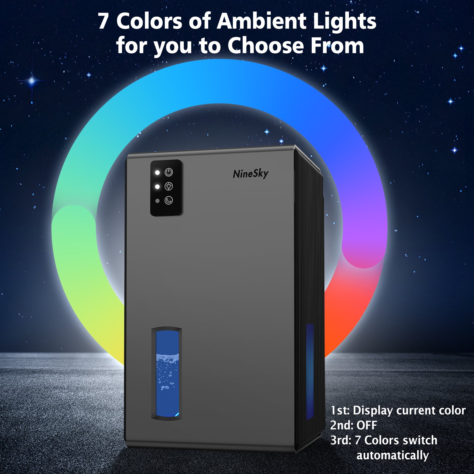 NineSky Dehumidifiers for Home, 95 OZ Water Tank, (1000 sq.ft) Dehumidifiers for Bathroom Bedroom Basement with Auto Shut Off,7 Colors LED Light (Gray)